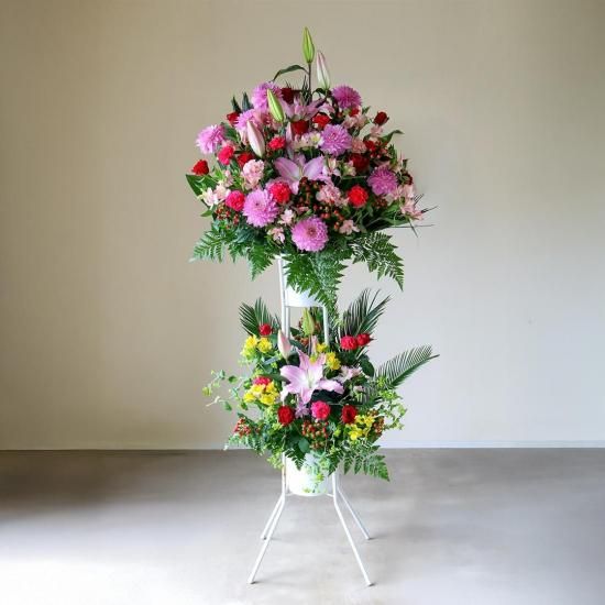 あらゆる場面に華を添える豪華2段タイプのスタンド花です。